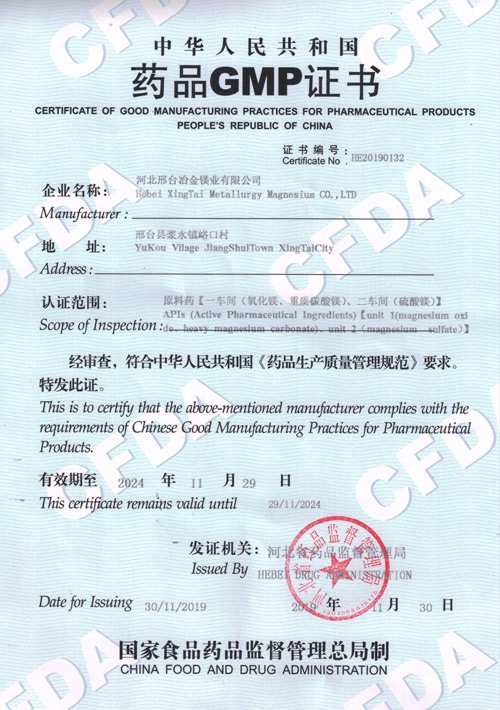 冶金鎂業(yè)食品生產(chǎn)許可證正本