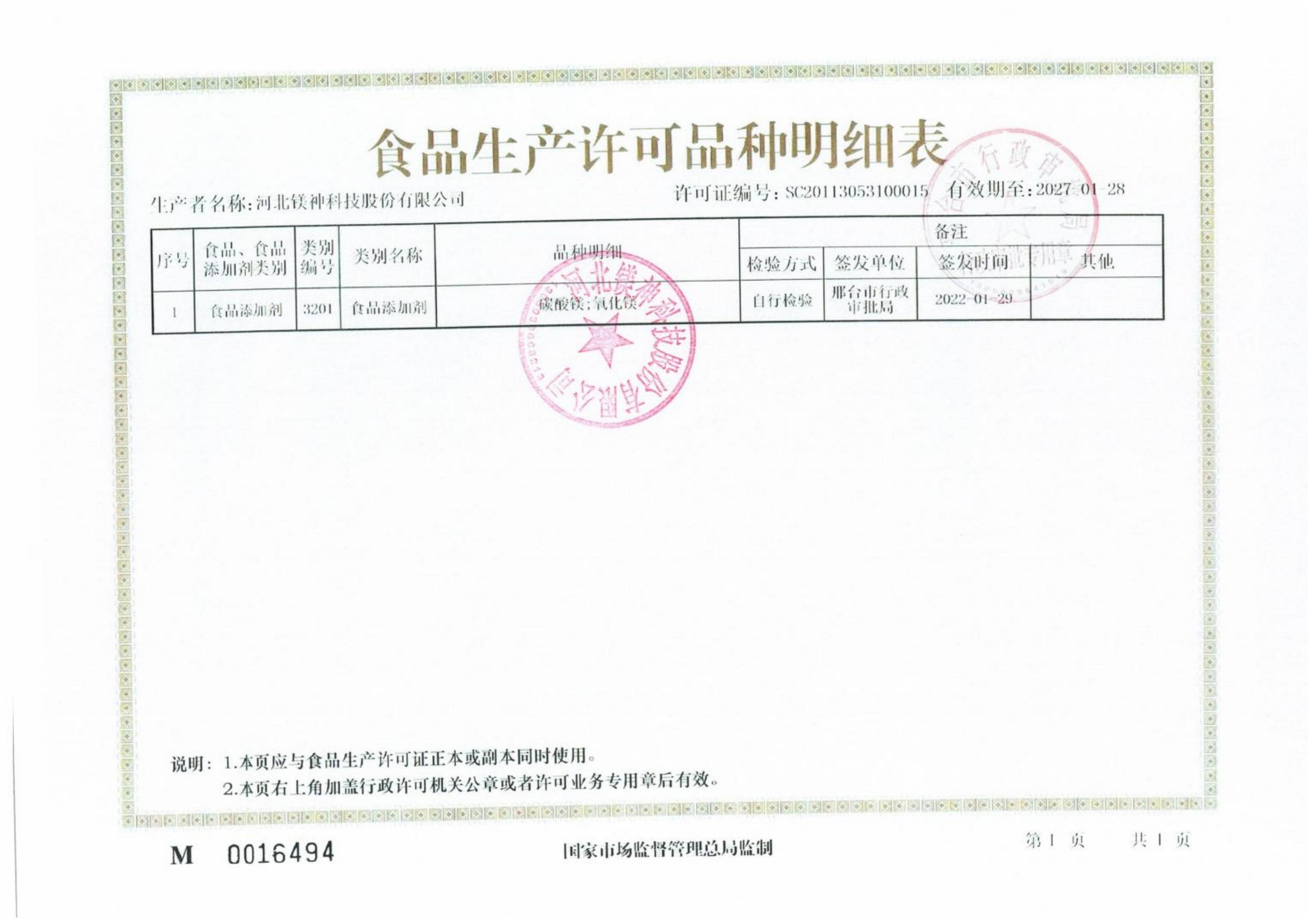 冶金鎂業(yè)食品生產(chǎn)許可品種明細(xì)表