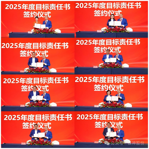 總結過去是為了更好地奔赴未來,簽約儀式上公司董事長孫文先生與各利潤中心總經理、職能中心總監共同簽署2025年度目標軍令狀,各級管理者逐級簽訂目標責任書。