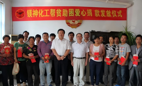 2.同獻愛心共鑄希望背景:2019年9月2日,董事長孫文先生獻愛心資助貧困大學。本次救助的是北塘疃鎮公村一名即將入學的貧困大學生呂某某,他當年參加高考考上了河北東方學院,面對上萬元的學費,這個貧困農家一籌莫展。呂延達這個孩子非常孝順,不愿意父母為自己背上沉重的債務,決定放棄讀大學的機會,外出打工。董事長獲悉后,決心幫他渡過難關,迅速聯系他來鎂神公司,慷慨解囊資助1.5萬,一直幫他完成大學學業。董事長和受到資助的貧困大學生及家長熱情握手并鼓勵說:“小伙子,我就出身廣宗農村,深知上大學的機會來之不易和父母的艱辛,我供你念大學,你好好念書,要奮發努力,將來成為一個對國家、對社會有用的人才,再去回饋社會。”