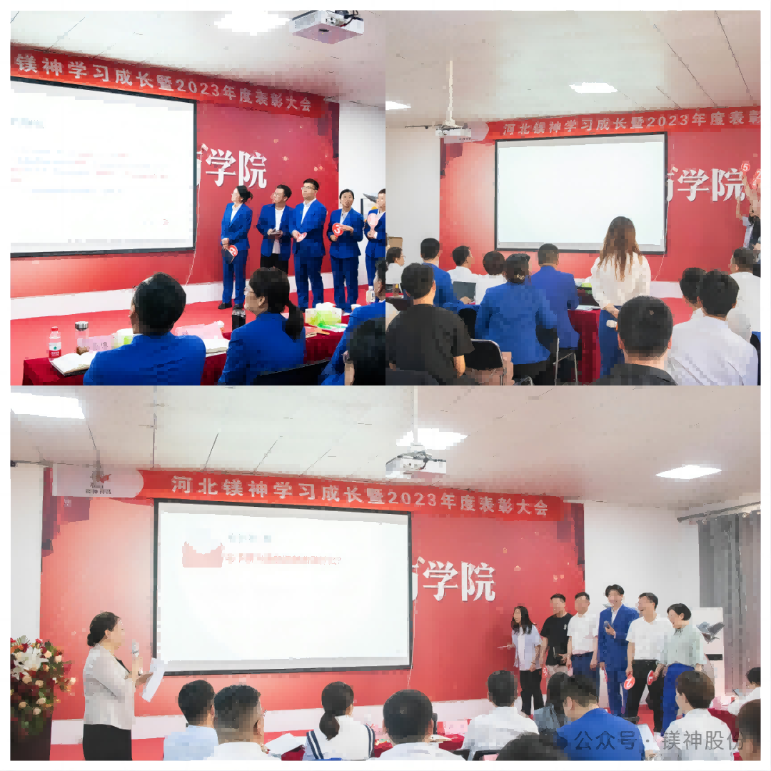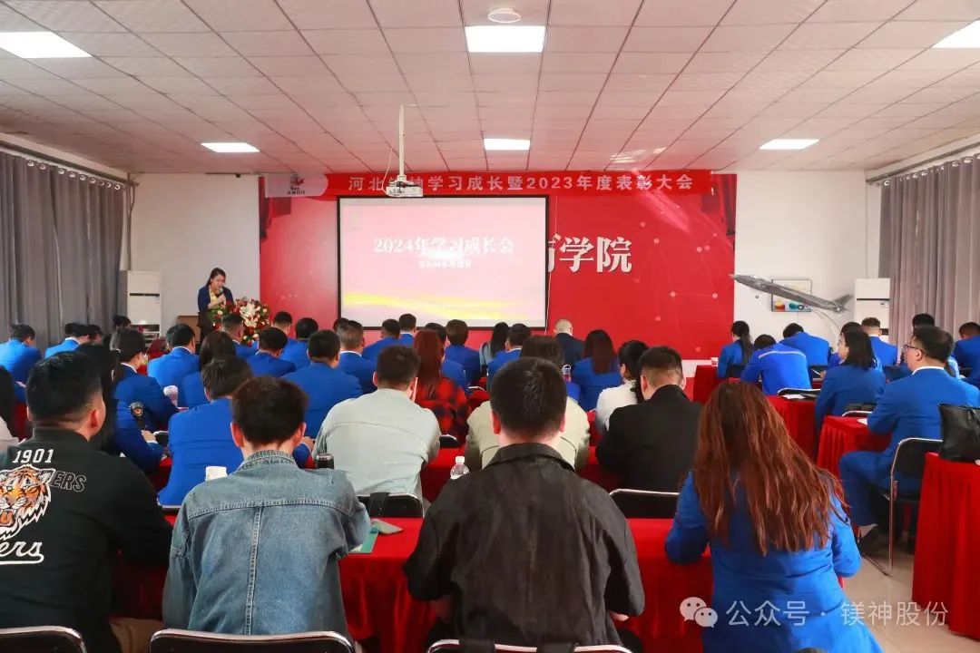 2024年4月17日,伴隨著全體員工鏗鏘有力的宣誓聲和氣勢磅礴的歌聲,河北鎂神學(xué)習(xí)成長暨2023年表彰大會拉開了帷幕……