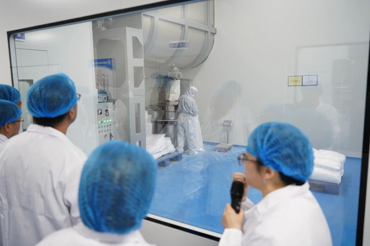 嘉賓們首先來到鎂神科技食品氧化鎂二期車間,這是此次項(xiàng)目的核心區(qū)域。車間內(nèi)的全自動(dòng)四列雙層電加熱輥道窯生產(chǎn)線,是國(guó)內(nèi)首條結(jié)合動(dòng)靜生產(chǎn)的高效生產(chǎn)線,具備精準(zhǔn)的溫控系統(tǒng),溫度誤差控制在±2℃以內(nèi),有效保證了產(chǎn)品的高穩(wěn)定性和潔凈度。現(xiàn)場(chǎng)技術(shù)人員向嘉賓詳細(xì)介紹了生產(chǎn)線的先進(jìn)工藝和操作流程,展示了鎂神科技在食品級(jí)氧化鎂生產(chǎn)領(lǐng)域的技術(shù)創(chuàng)新與領(lǐng)先優(yōu)勢(shì)。接下來進(jìn)入潔凈區(qū)后,嘉賓們進(jìn)一步感受到鎂神科技在產(chǎn)品品質(zhì)保障方面的嚴(yán)謹(jǐn)態(tài)度。食品二期項(xiàng)目中面積達(dá)5000平方米的十萬級(jí)潔凈區(qū)達(dá)到了國(guó)際食品安全標(biāo)準(zhǔn),嚴(yán)格控制生產(chǎn)環(huán)境中的微生物和異物,確保產(chǎn)品的純凈度。通過高標(biāo)準(zhǔn)的生產(chǎn)環(huán)境,鎂神科技不僅滿足了國(guó)內(nèi)外客戶對(duì)食品安全的嚴(yán)格要求,還為開拓全球市場(chǎng)提供了堅(jiān)實(shí)的質(zhì)量保障。