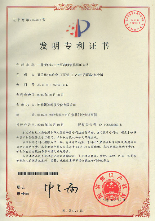 一種碳化法醫藥級氧化鎂